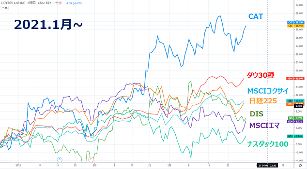 今年2021年に入ってからのパフォーマンス比較