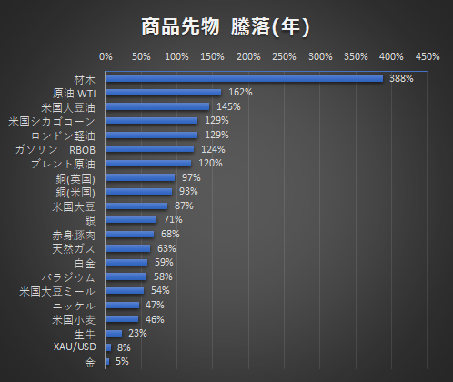銅は10年ぶりに最高値を更新、その他商品も軒並み強含みました。