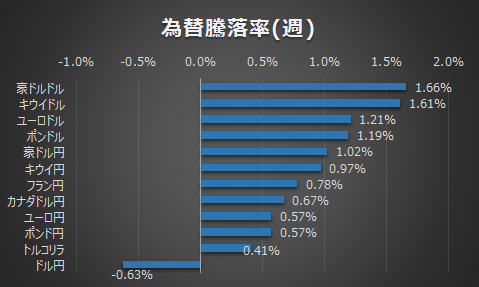 為替はドル安が進行しました。ドルインデックスは8週間ぶりの安値をつけ、コロナショック以降サポート&レジスタンスで意識されてきた89日移動平均平均線を抜けきれず先週の安値を更新しました。