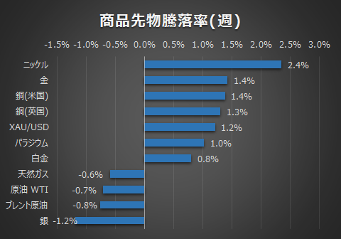 金は金利の低下によってトレンドが出ると思いきや方向感定まらず、今週も1800ドルを中心としたレンジの中に終始しました。