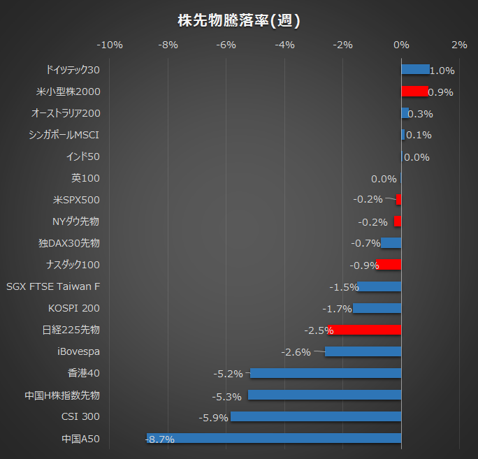 来週は引き続き中国市場の動向や、米の雇用を中心とした指標へ注視しつつ、ここからの戻りがあるかを見つめる週になると考えます。