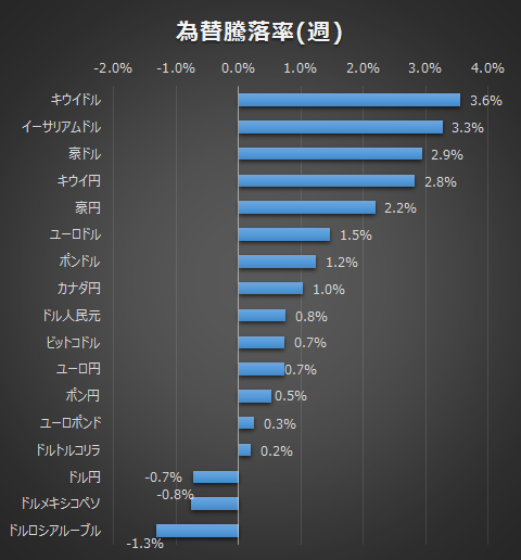 今週は予想ほどは酷くなかった決算や中国でコロナ関連の制限措置が緩和される可能性があるとの報道が材料となり、米国指数は続伸となりました。為替はオセアニア通貨、商品では銀が買われ、投資家心理が上向いた様相、金利は2年債・10年債利回りともに高値を追う展開、ドル円は152円直前まで急伸し為替介入となりました。
