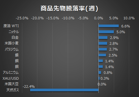 各資産の週次の騰落は以下の通りです。