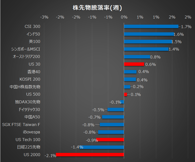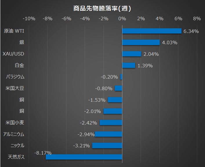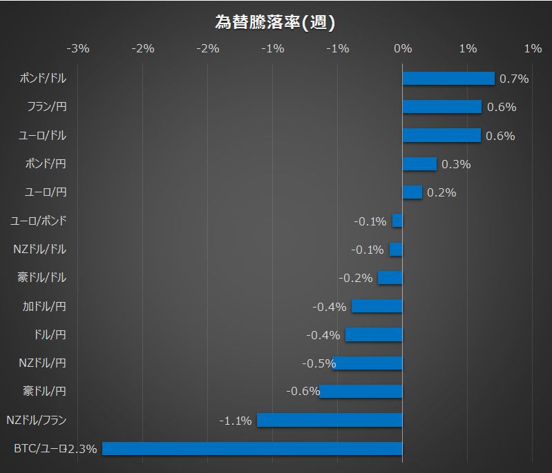 各資産の週次の騰落は以下の通りです。